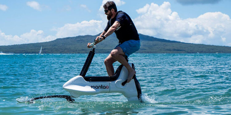 V článku z CES2020 o tom informoval aj web Daily Mail. Nová športová pomôcka z ľahkých uhlíkových vlákien a leteckého hliníka sa dáva do pohybu pedálmi ako pri klasickom bicyklovaní. Podľa výrobcu má navodiť dokonalý cyklo zážitok, len na vode. Nemá však kolesá ale vodné vrtule (hydrofily), ktoré mu dávajú pri otáčaní potrebný vztlak na vode. Na pomoc má však k dispozícii elektromotor s výkonom 460 kW, ktorý umožní rýchlejší pohyb. Max. rýchlosť je cca 19 km/h. Princíp je prostý, čím rýchlejšie šliapete, tým vyššie a rýchlejšie sa pohybujete po hladine. Začiatky jazdy sú možno trochu nesmelé, ale je to len vec zvyku. Stačí sa nebáť, vsunúť ľahko prenosný Hydrofoiler do vody, nasadnúť a pedálovať. Zakladateľ spoločnosti Manta5 Guy Howard-Willis tvrdí, že ich vodný bicykel bude do troch rokov od uvedenia na trh v USA samostatnou a športovou kategóriou. Cena celého špásu? Pripravte si 6733 € alebo 7490 dolárov.