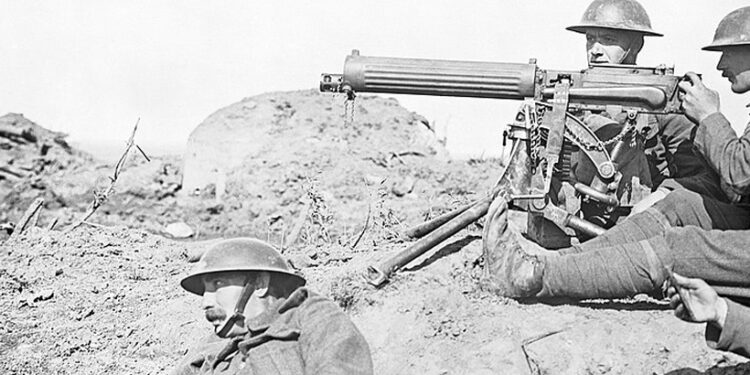 Britský guľomet Vickers bol v podstate vylepšený prvý guľomet Maxim (z roku 1885). Ten výrazne zmenil charakter doterajšieho boja. Do výzbroje bol .303 Vickers v menšom rozsahu zavedený v roku 1912. Spočiatku iba málo dôstojníkov pozemného vojska vedelo okamžite využiť jeho potenciál, napr. pri zákopovej vojne. Bol dobre využiteľný aj ako protilietadlový guľomet, na kryciu nepriamu paľbu a priamu paľbu na živú silu (pechota, jazdectvo). Pri bitke u Loosu v roku 1915 sa Briti presvedčili o výhodách svojho Vickersu a začali sa na zbraň pozerať v inom svetle. V októbri 1915 dokonca založili samostatné Guľometné vojsko (cca 6500 dôstojníkov a 125 000 vojakov). Jeho vojaci zdokonaľovali pre zbraň postupy, taktiku a palebné plány. V skúsených rukách narobil protivníkom okrem vrások na čele aj silné straty.