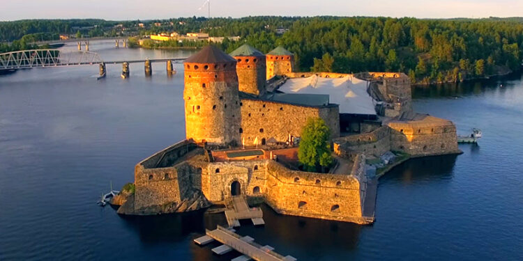 Hrad (v preklade Olafov hrad) bol postavený v roku 1475 švédskym štátnikom Erikom Axelsonom na ostrove v úžine Kyrönsalmi, ktorá spája jazerá Haukivesi a Pihlajavesi. Bol súčasťou fínskeho systému pohraničných pevností s ruskou hranicou. V 17. a 18. storočí sa stal svedkom mnohých bojov medzi švédskymi a ruskými vojskami. Hoci pevnosť nebola nikdy dobytá silou, jeho posádka dvakrát súhlasila s podmienkami kapitulácie ( v rokoch 1714 a 1743). Počas stáročí bol prestavovaný a prezbrojovaný. Niekoľko ničivých požiarov zničilo v 19. storočí veľkú časť výzdoby hradu, všetko pôvodné zariadenie bolo zničené. Dnes je prístupný verejnosti a stále ostáva zdrojom mnohých príbehov.