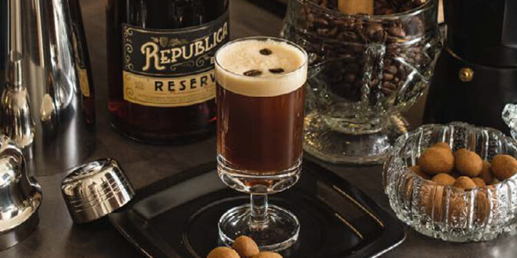 Príprava: Božkov Republica Reserva rum, kávu a vanilkový sirup nalejeme do šejkra, pridáme ľad a dobre