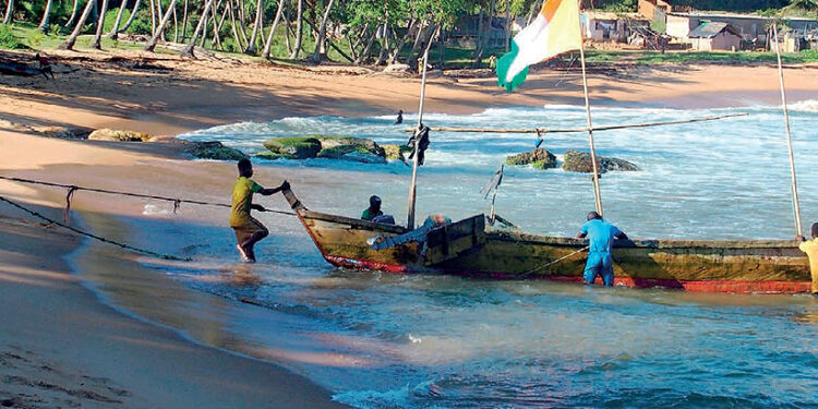 Do pick-upu nasadáme traja vrátane šoféra Rudyho. Cesta ubehla rýchlo, len 35 minút od Pauly Rock a sme v ospalej dedine na pobreží Guinejského zálivu. Rybárska dedina Drévin je miesto vyhľadávané nadšencami surfovania, ale i lokalita bohatá na rybolov pre obživu. Mamadou spoznal svojich priateľov pri prvom dome a domáci nám ponúkajú svoj alkohol na privítanie. Palmové víno. Tento kvasený nápoj z výťažku palmy som už mal možnosť ochutnať v Togu. Neodmietnem pohostinný africký ľud a s pozdravom „akwaba“ (vitaj), si vychutnávam nápoj. Gestom ruky naznačujem, aby sme ukončili návštevu a cestou k pobrežiu vidíme v mori už tri člny s rybármi. Mamadou ukazuje na člny vzdialené na mori. „Tam tie dva člny sú z Libérie, v našom mori je dosť rybárov aj z Ghany.“ V dedine Drévin i v okolí žije kmeň Neyo pôvodom z Ghany. Presídlili sa práve tu kvôli rybolovu. Blížime sa k skupine ľudí, ktorá očakáva rybársky čln a pokrikuje i kýva rukami nad hlavou. Netrpezlivo čakajú na bohatú zmes rýb. Neváhajú a poniektorí sa ponúknu a spoločne s rybármi vyťahujú čln z mora. Rybári sa hlasno dohovárajú o ceny s kupujúcimi a tí si odnášajú ryby. V blízkosti desiatich metrov už čistia ryby. Na tom by nebolo nič zvláštne, len ma prekvapilo, že i malé deti im pomáhajú pri čistení rýb. Mamadou mi na danú situáciu odpovedá stručne. „Veľkým problémom spoločnosti je, že deti často pracujú i v nízkom veku. Nie je to legálne, ale je to v tichosti tolerované.“ Niekedy až smutný pohľad, ale práve teraz vznikajú zaujímavé fotografie. Môj výstup na obrovskú skalu mi dovolí krajší výhľad na scenériu mora a trojicu mladých surferov. Surfovanie v divokom mori môže byť nebezpečné najmä pre začiatočníka. Po hodinovom zážitku mierime autom do nášho kempu. Dni ubiehajú rýchlo a vidieť miesta, kde rastie najkvalitnejšie kakao, som neodmietol.