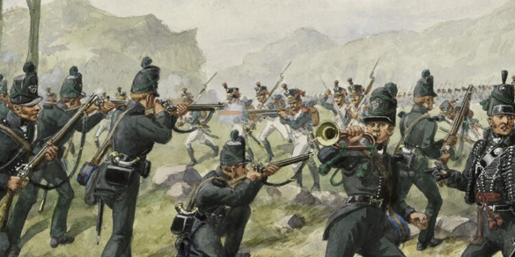Vojenská doktrína britskej armády tak na prelome storočí prešla zmenou a v roku 1800 vznikol 95. peší pluk. Tvorili ho takzvaní harcovníci, ľahkí pešiaci, ktorí bojovali vo voľných formáciách, a ostrostrelci. Tí dostali do výzbroje Bakerovu pušku, nový model zbrane s vývrtom hlavne. Všetci členovia pluku dostali v rámci štandardnej uniformy aj zelené kazajky, ktoré ich nielen výrazne odlíšili od vojakov radovej pechoty bojujúcich v červených kazajkách, ale umožnili im aj lepšie splynúť s prostredím. Dá sa povedať, že išlo o prvé maskáče.