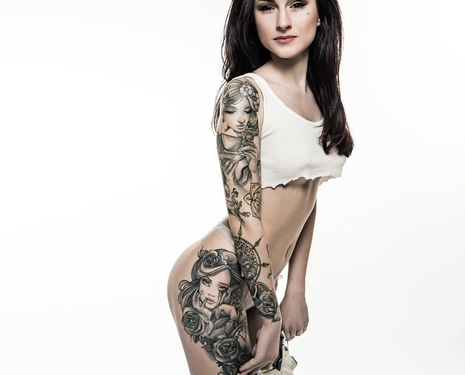 Mojím najväčším vzorom bola vtedy mladá profesorka, ktorú už zdobili mnohé tetovania a pírsingy, a práve ona ma zobrala na moje prvé tetovanie. Už dávno som ho mala premyslené – tri slová vzadu medzi lopatkami, ktoré ma vystihujú. Z ďalšieho tetovania niekoľkých slov vznikol postupne veľký motív na stehne a na boku. Samu ma prekvapilo, ako sa to vyvinulo. Nepáči sa mi, keď je niekto potetovaný od korienkov vlasov až po prsty na nohách, mám rada, keď kerky zvýrazňujú niektoré časti tela. Rodina i známi si na mňa zvykli a ja som v tom až po uši.