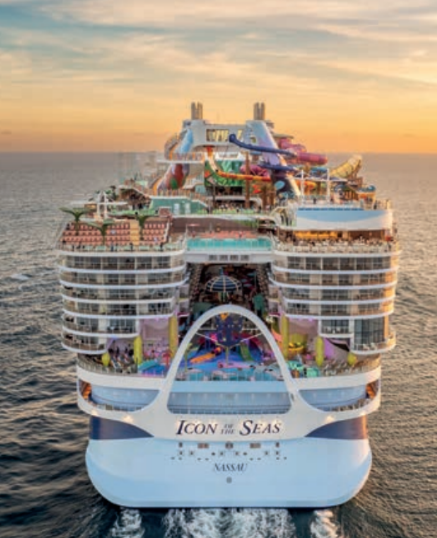 Túto niekoľkoposchodovú výletnú loď postavila spoločnosť Royal Carribean. Na svoju prvú cestu sa Ikona vydala v januári 2024 a jej krstným otcom sa stal argentínsky futbalista Lionel Messi. Loď nie je iba najväčšia, ale aj technologicky najvyspelejšia a najprepychovejšia. Cena za jej výstavbu sa vyšplhala na viac ako 2 miliardy dolárov (približne 1,8 miliardy eur). S dĺžkou 365 metrov prekonáva napríklad takú Eiffelovu vežu. Má 20 palúb a zmestí sa tam až 7 600 pasažierov.