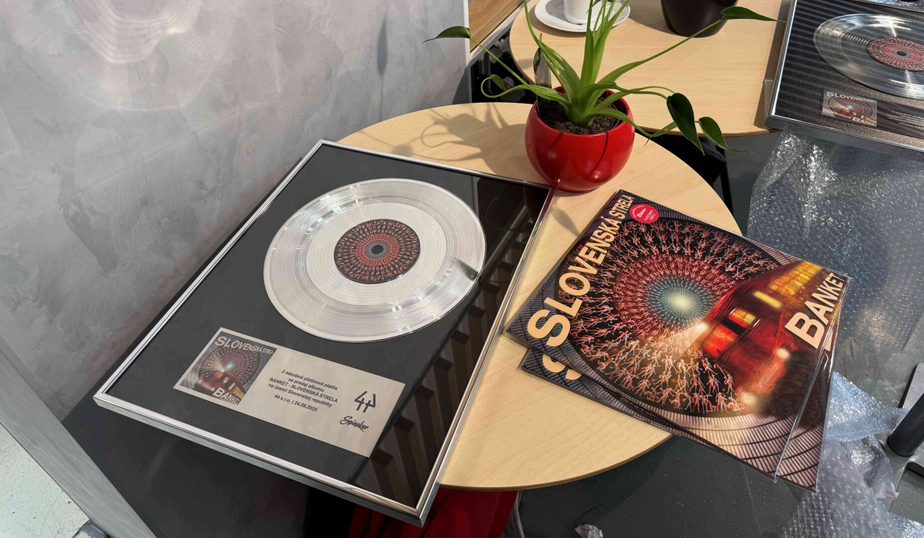 Legenda slovenskej a českej hudobnej scény Richard Müller má na konte ďalší veľký úspech! Z rúk šéfa distribučnej spoločnosti Spinaker Mariána Šokyho si prevzal dvojplatinovú platňu za album Slovenská strela, ktorý vyšiel pod hlavičkou skupiny BANKET. Spevák a skladateľ zároveň predstavil nový a mimoriadne osobný klip k piesni Zub času, ktorú venoval svojej manželke Vande.